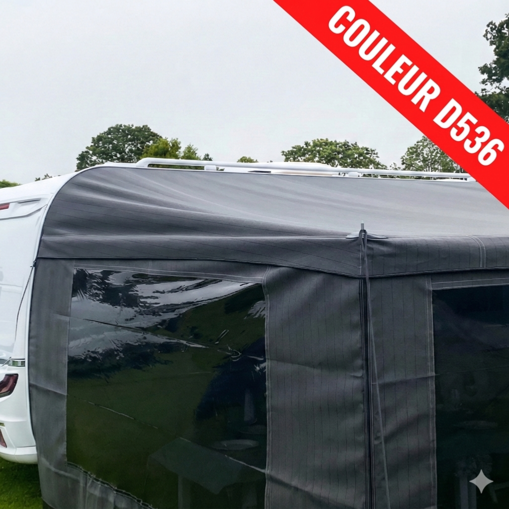 Agrandissez votre espace de vie lors de vos séjours et déplacements avec cet auvent de caravane. Particulièrement prisé par les gens du voyage pour sa fiabilité et ses grands volumes, cet auvent élégant est l'équipement indispensable pour profiter pleinement de vos haltes, à l'ombre et à l'abri des intempéries.